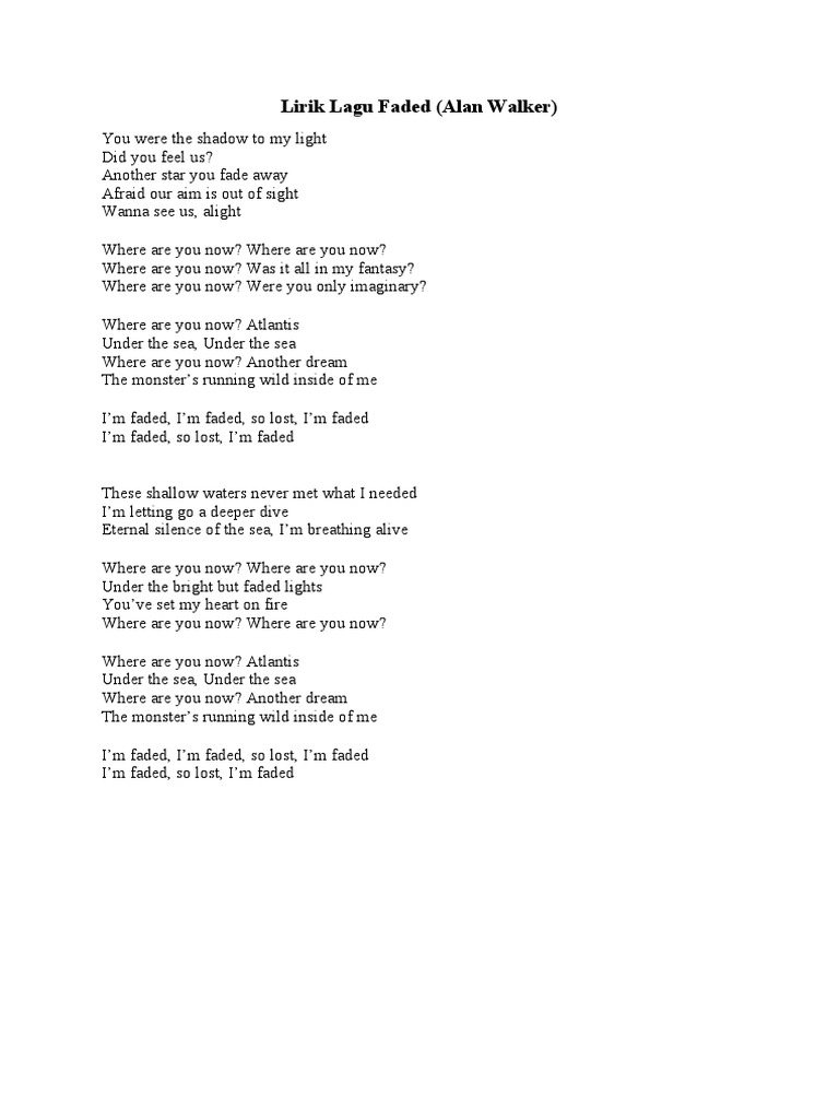 Lirik Lagu Faded Terjemahan Bahasa Melayu